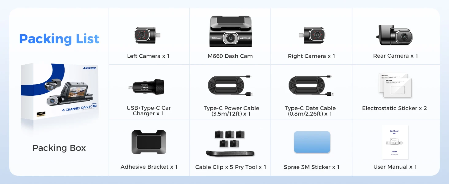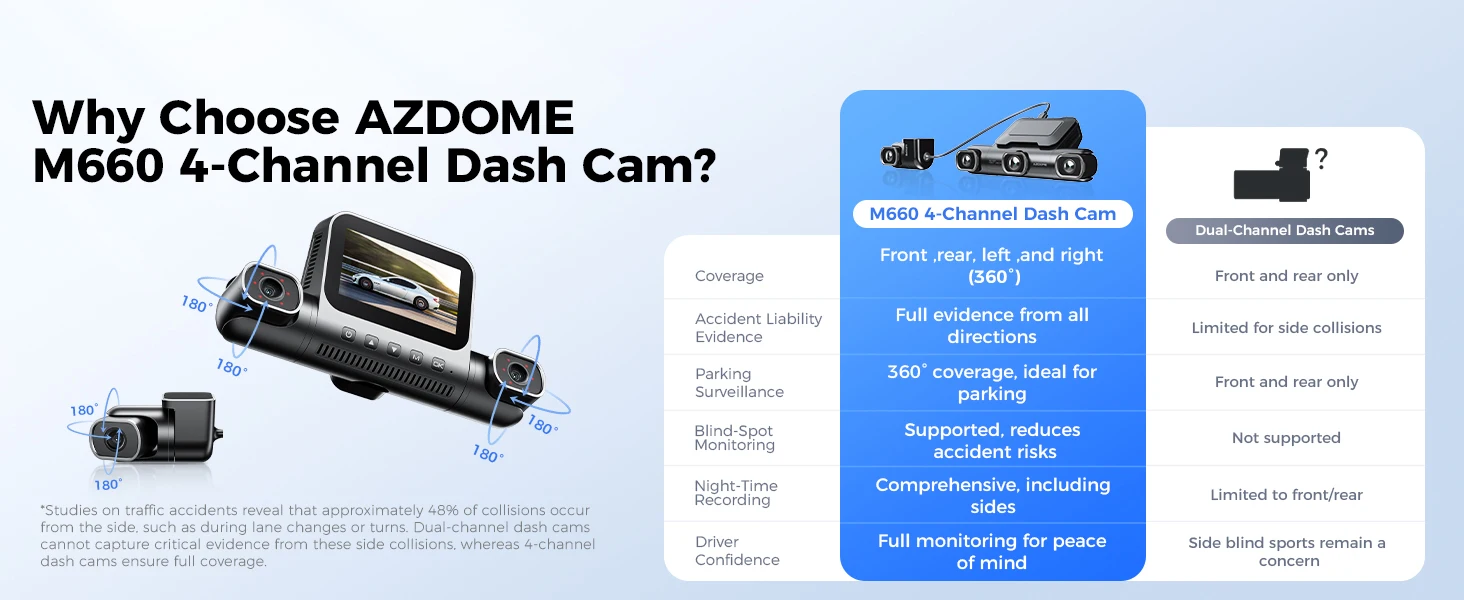 AZDOME M660 Car DVR 4 Channel 360° Dash Cam Front Rear Inside 128G EMMC WIFI GPS Dash Camera for Cars 2.5K+1K+1K+1K Parking ModeAZDOME M660 Car DVR 4 Channel 360° Dash Cam Front Rear Inside 128G EMMC WIFI GPS Dash Camera for Cars 2.5K+1K+1K+1K Parking Mode