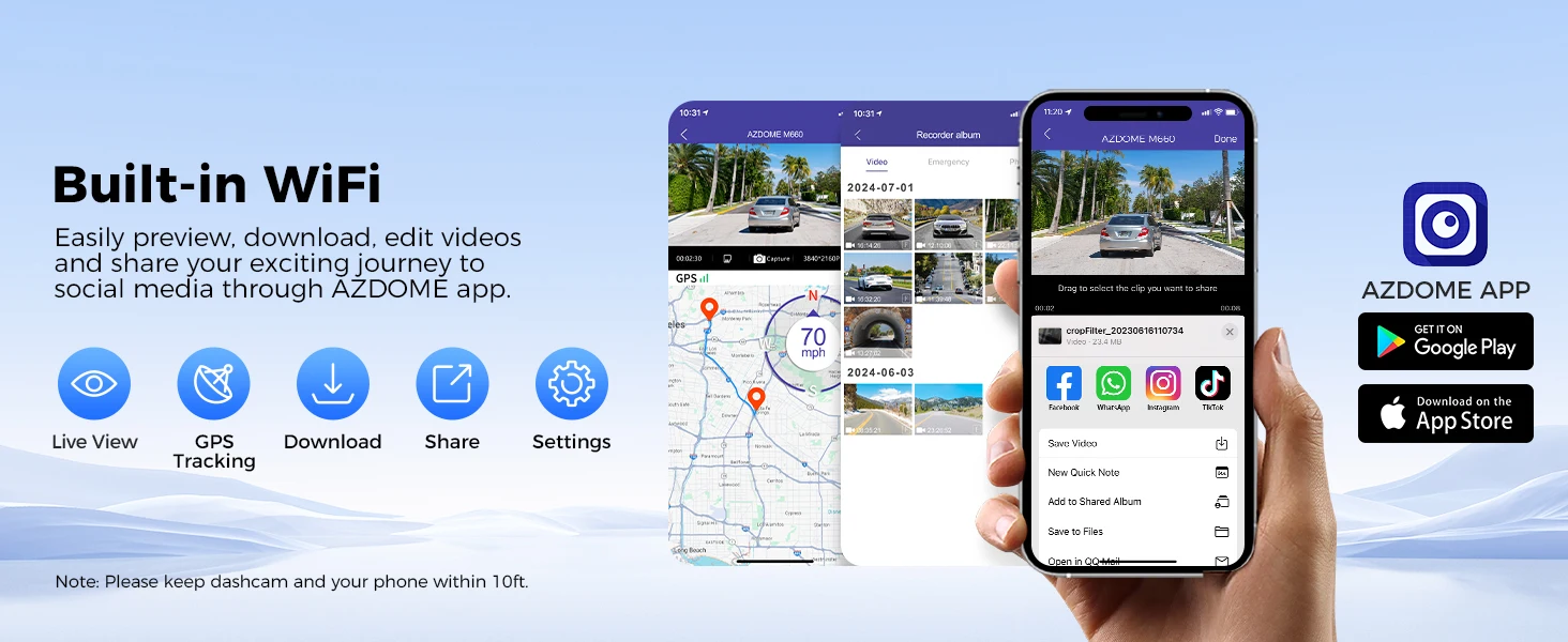 Stay connected effortlessly with dual-band 2.4G/5G WIFI and a convenient Type-C power interface. The AZDOME M660 is compatible with standard car chargers and voltage reducers, offering you flexibility and ease of use.