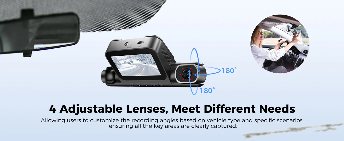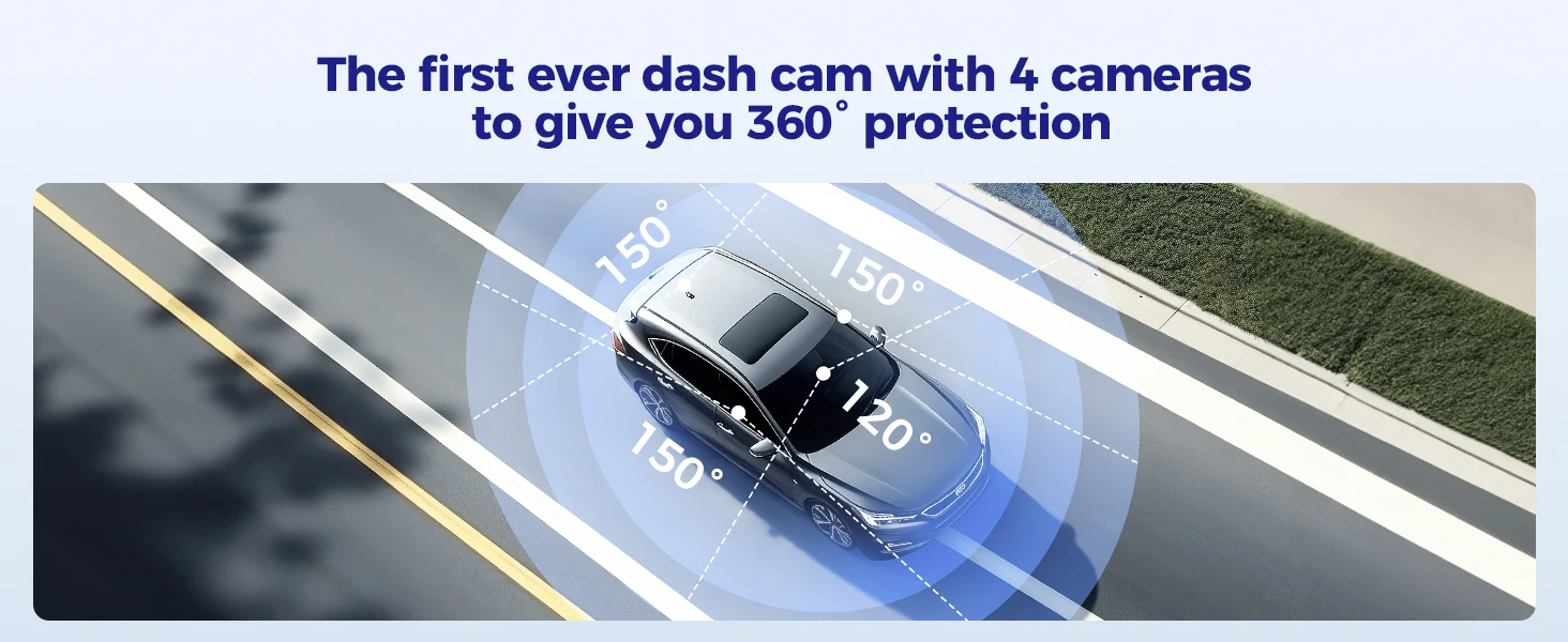 Dash Cam, 4 Channel 360°, 2.5K+1K+1K+1K, Parking Mode