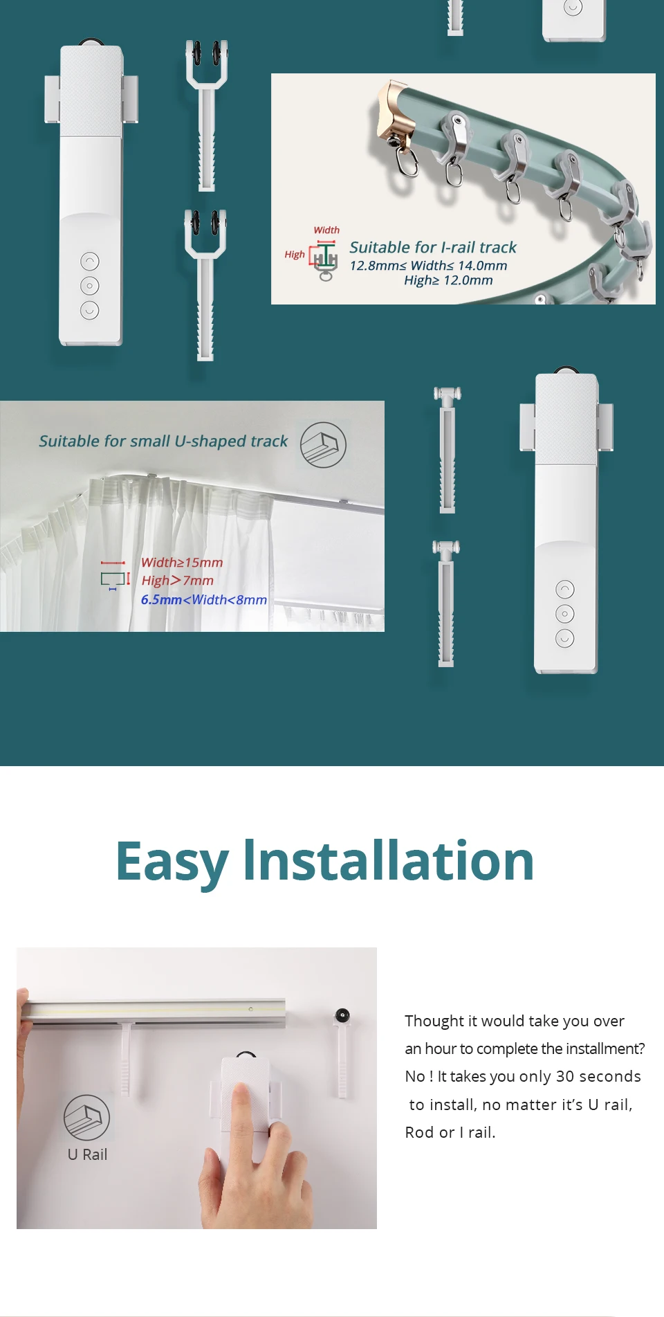No caster served for my rail have give a way or change all curtain